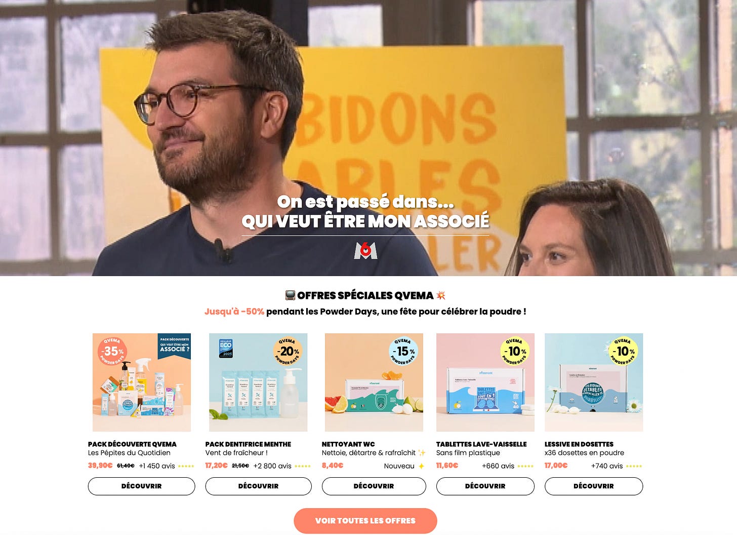 - Mettre une hero banner avec un visuel QVEMA et un CTA ultra clair