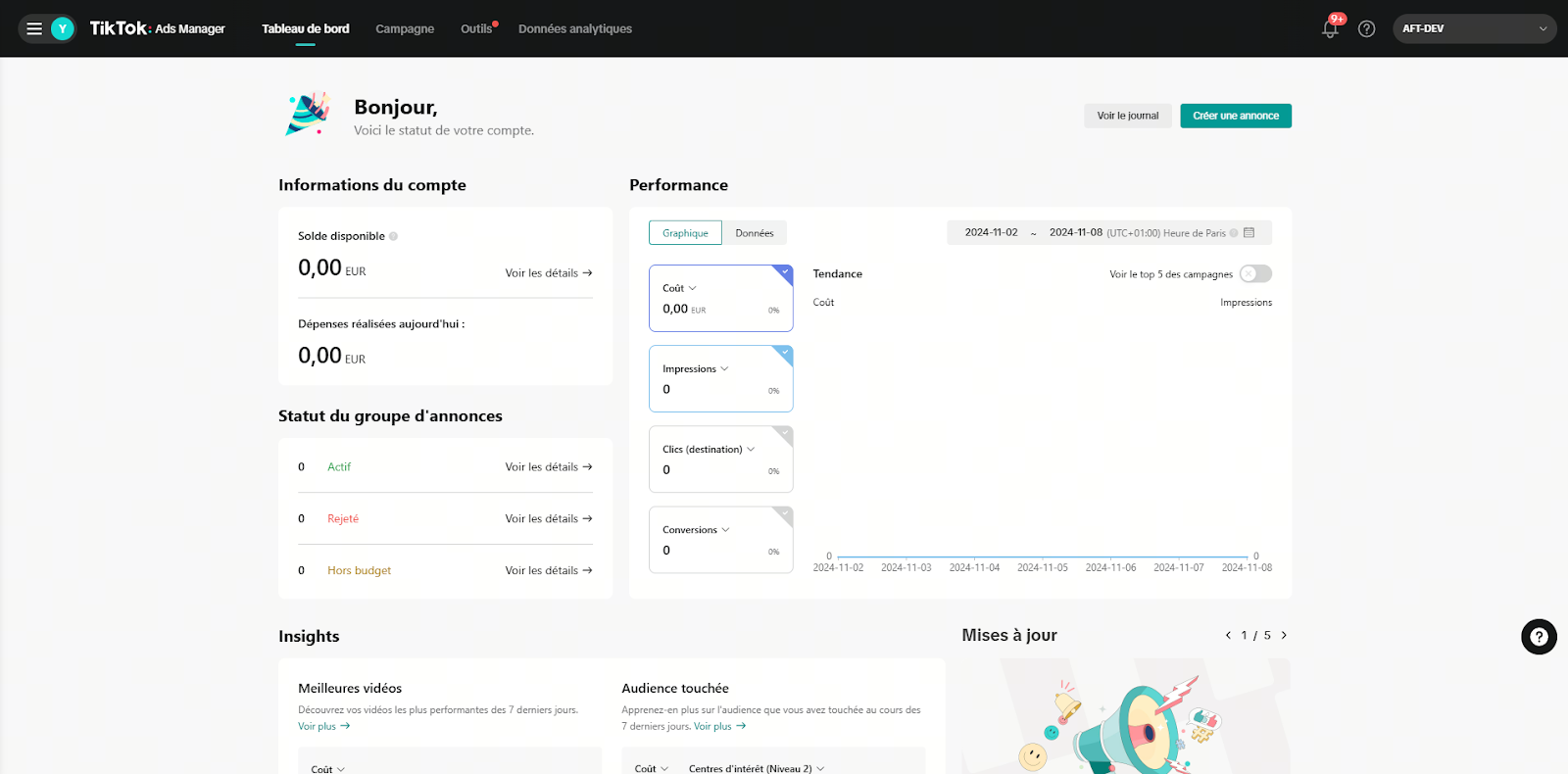 Comptez 500-1000€/mois minimum pour tester sérieusement votre campagne publicitaire sur TikTok.