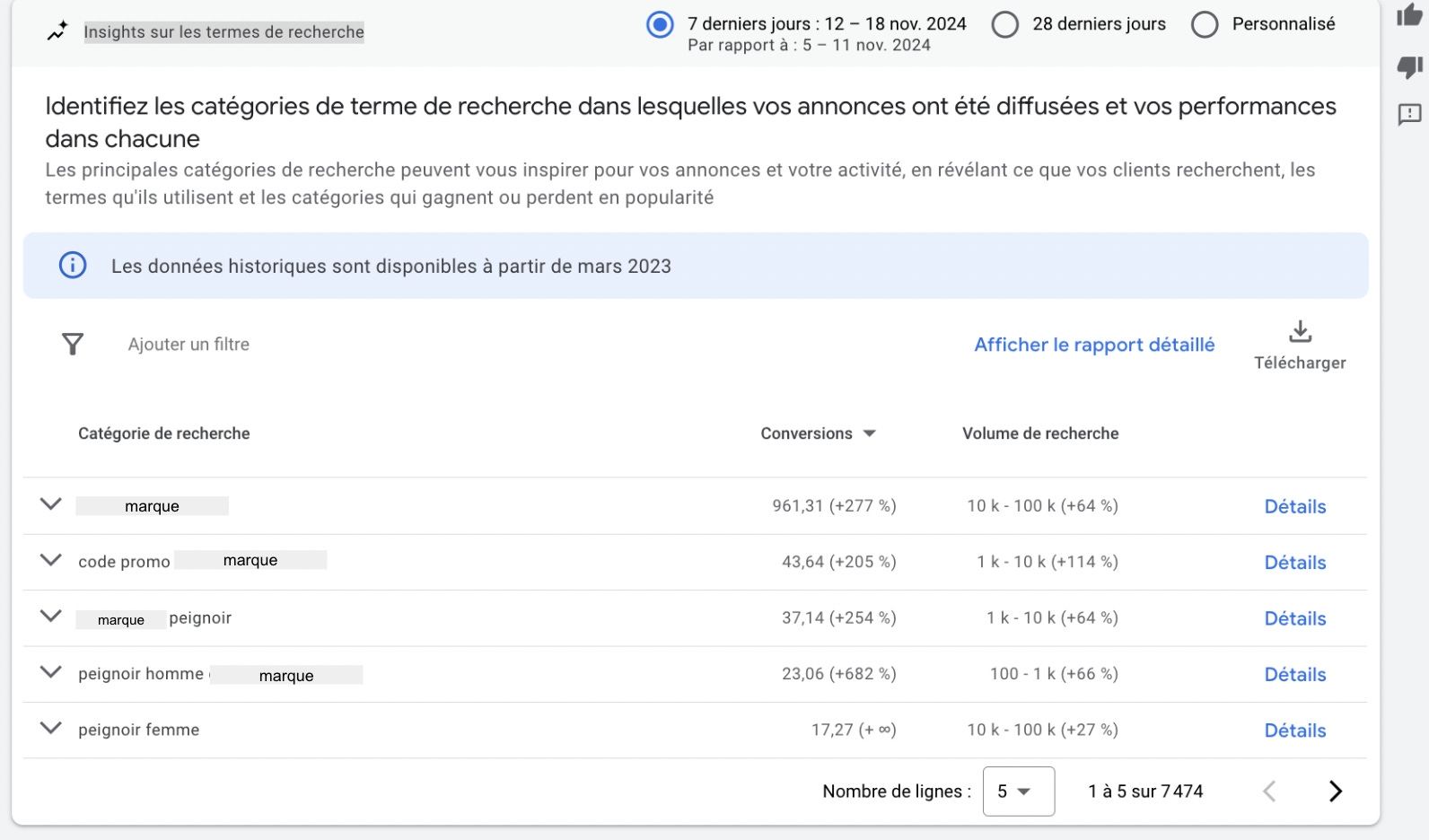 Si le nom de ta marque ressort, c’est que ta campagne PMax dépense une partie de ton budget sur ta marque.